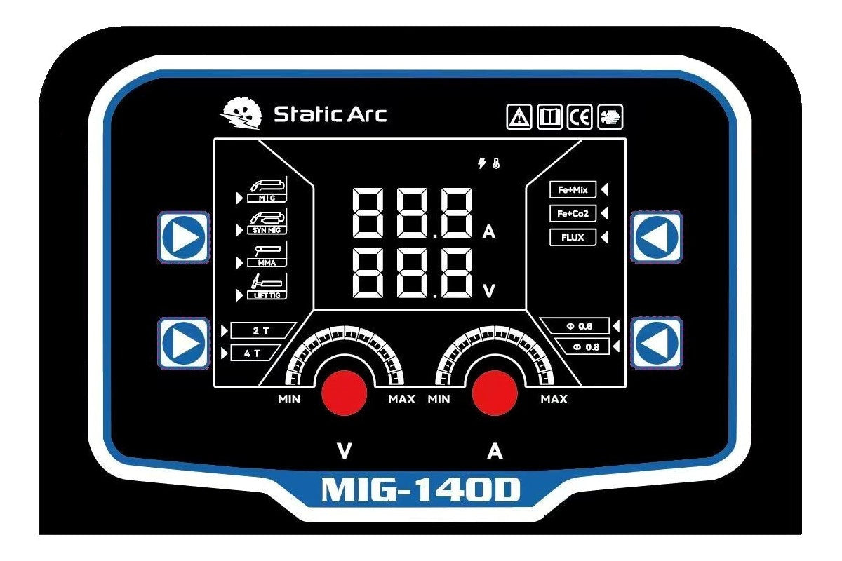 - MIG output: 30-140A (10-24V)